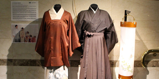 Дорогие гости Японского дома! В этом месяце наша инсталляция в фойе посвящена кимоно. На первом этаже бизнес-центра представлены два образца кимоно — женское и мужское.